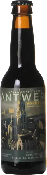 ANTWERP Brandy Vanilla BA ist ein Russian Imperial Stout von Galea Craft Beers aus Belgien, das sechs Monate auf Brandy‑Vanille‑Fässern gereift wurde. Diese Version kombiniert geröstete Spezialmalze mit Kaffeebohnen von Crossroast, Kakaobohnen, Vanillebohnen und einer Prise Zimt. Das Ergebnis bietet Aromen von Schokolade, Kaffee, Toffee und Karamell, die sich mit einer warmen Brandy‑Note und einem sanften Vanille‑Abgang verbinden.