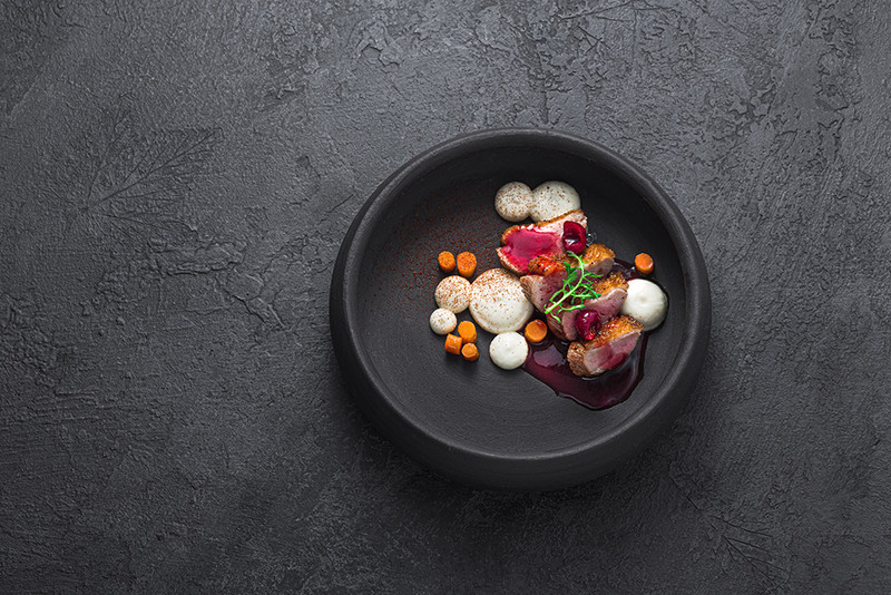 Die Entenfilets mit Salz und Pfeffer bestreuen. Die letzten 25 Gramm Butter in einer Pfanne erhitzen und die Filetstücke bei starker Hitze 30 Sekunden pro Seite goldbraun braten. Mit der Sauce servieren.